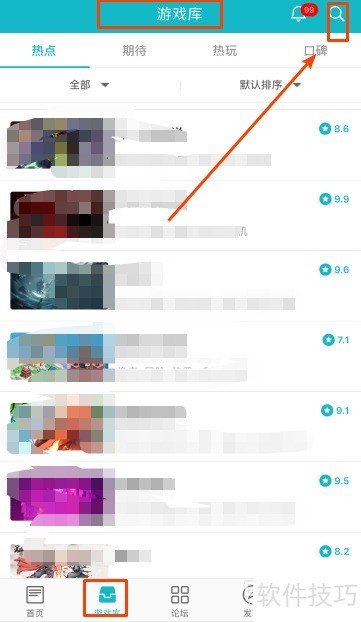 2、 打开网络游戏库,点击右上角的搜索按钮进行查找。