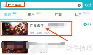 3、 在搜索框输入亡灵杀手,点击搜索结果中的首个游戏链接即可。