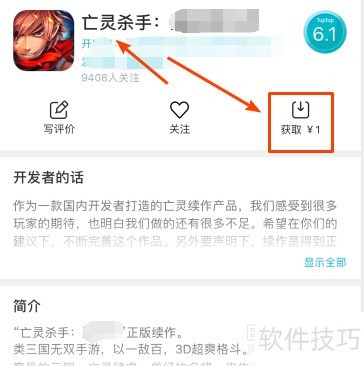 4、 进入亡灵杀手详情页面,点击右下角获取按钮,自动跳转至下载页面,稍等片刻即可完...