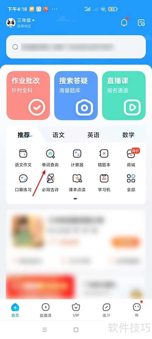 2、 打开作业帮首页,选择单词查询功能。
