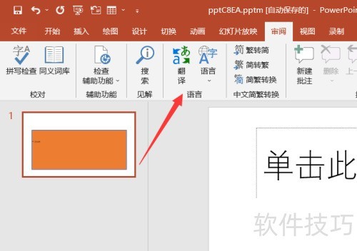 在PPT中进行翻译时,需先选中目标内容,再点击审阅选项卡中的翻译功能即可完成操作。