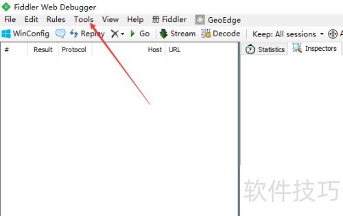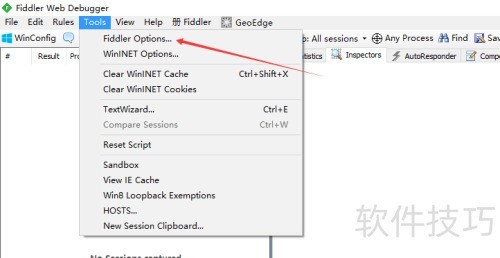 4、 点击工具菜单后,从下拉列表中选择Fiddler选项即可打开相关设置界面。