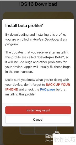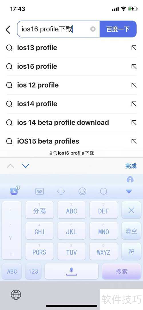1、 首先需获取iOS 16描述文件,可在百度搜索中输入iOS 16 Profile下载关键词,查找相关资源并完成下载安装。