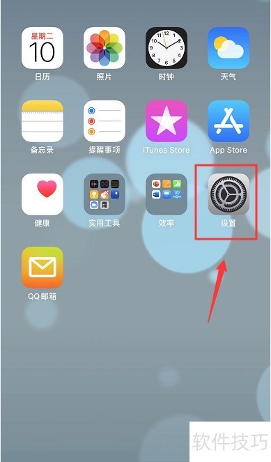 1、 打开iPhone,进入主屏幕点击设置图标