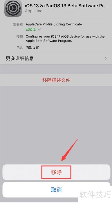 5、 点击移除描述文件,操作示