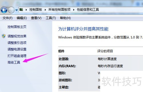 4、 进入性能信息与工程,点击高级工具,操作所示。