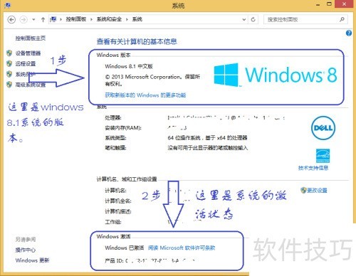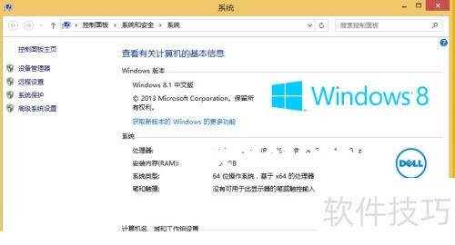 4、 该图片显示系统属性界面,可查看Windows 8.1的版本信息及激活状态。