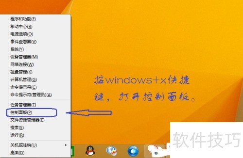 1、 进入Windows 8.1系统后,按下Windows+X组合键,即可打开控制面板。