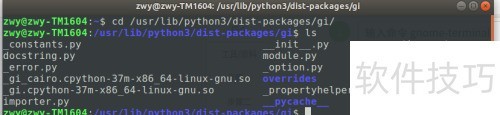 6、 将修改后的gi包复制到Python3默认目录,操作命令如下所示。