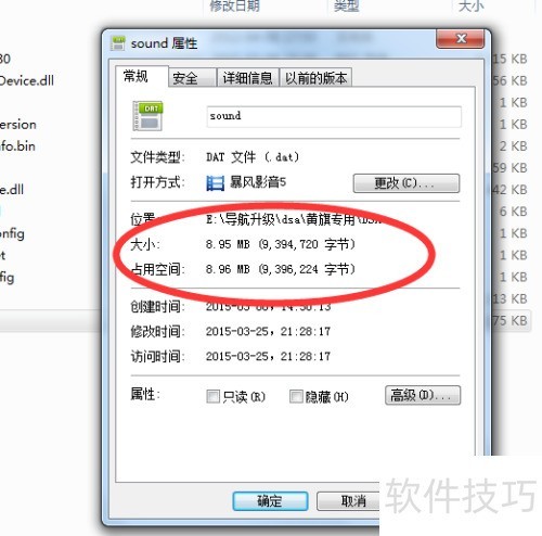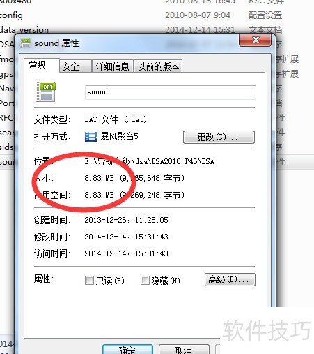 6、 检查sound文件体积是否增大,确认升级后重新插入导航设备即可正常使用。