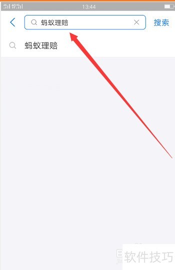 9、 搜索框内输入蚂蚁理赔进行查询。