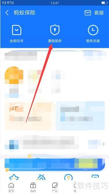 5、 点击理赔服务,详见配图