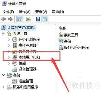 2、 在计算机管理界面左侧选择本地用户和组选项。