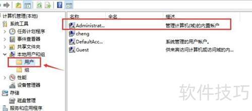 3、 双击用户选项后,右侧界面将显示Administrator账户信息。