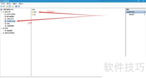 2、 进入计算机管理,依次选择本地用户和组中的用户选项。