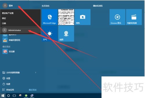 5、 点击左侧头像,选择Administrator用户即可完成切换操作。