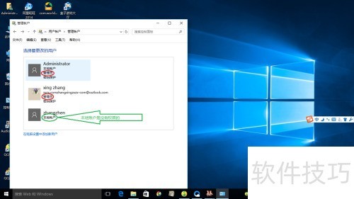 2、 进入控制面板的用户账户,选择管理其他账户即可查看。