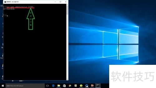 4、 点击后将弹出一个窗口,输入net user administrator 密码,密码可自行设定,输入完成后若显示命令成功,即表示操作完成。