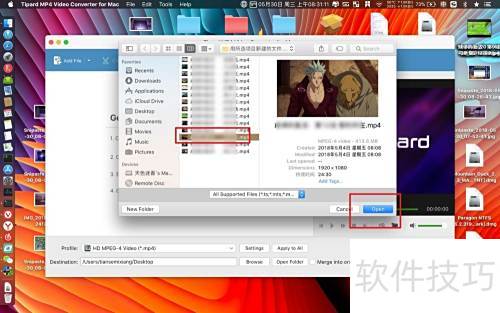 2、 点击添加文件,选择Mac上的视频,然后点击打开即可。