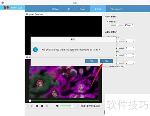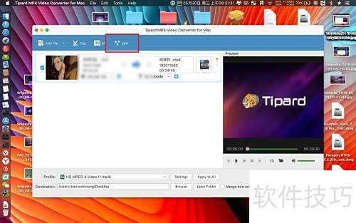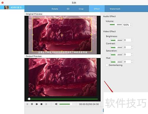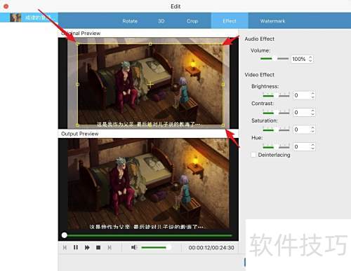 3、 点击编辑功能,拖动黄色边框选定所需裁剪区域,下方窗口将实时预览裁剪后的视频效果。