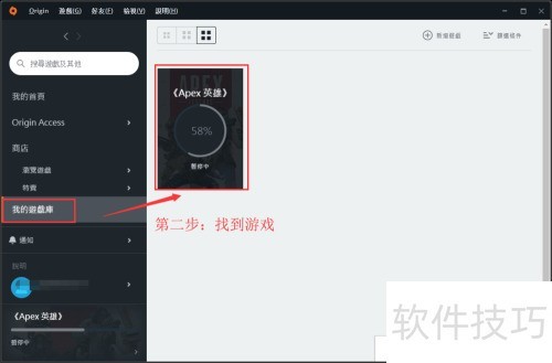 4、 登录Origin客户端后,进入游戏库,找到并选择Apex英雄即可。