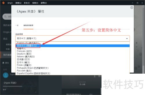10、 Apex英雄中文设置第六步:进入游戏语言选项。