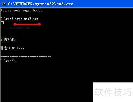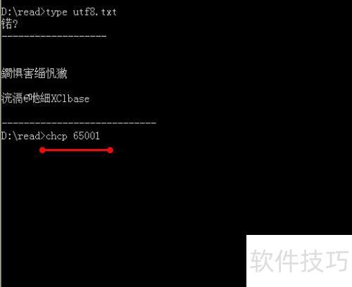 在CMD窗口中输入chcp 65001命令,即可切换为UTF-8编码,使UTF-8文件内容正常显示。