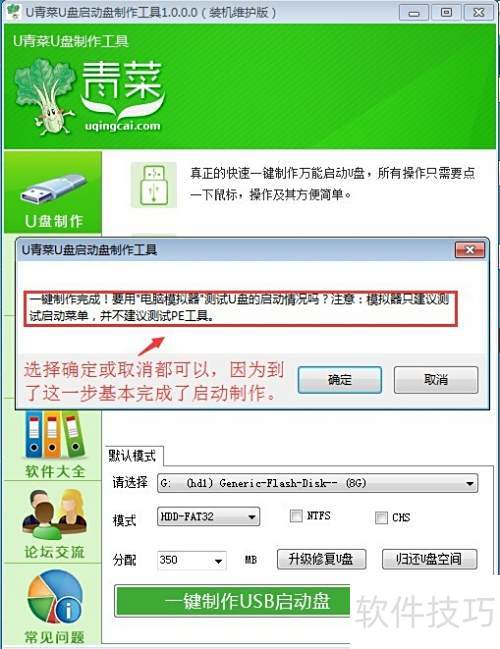 6、 制作USB启动盘成功后会弹出提示窗口,所示。建议选择否,若需测试可选是,通常情况下选择否即可完成操作。