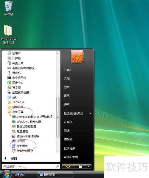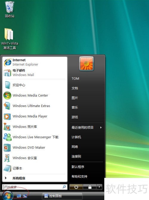 1、 启动Windows Vista系统,点击任务栏上的开始按钮。