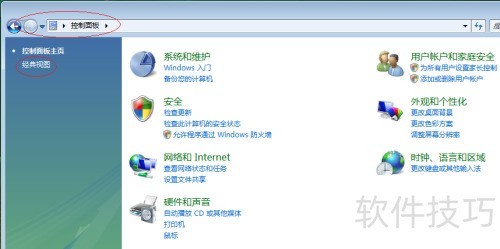 3、 点击控制面板左侧的经典视图链接。