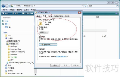 使用Windows Vista系统时,常需取消文件夹共享。具体操作步骤如下:进入文件夹属性,切换到共享选项卡,点击高级共享,取消勾选共享此文件夹,最后确认设置即可完成。