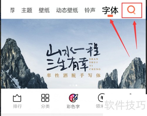 1、 打开小米手机自带的应用,点击首页顶部的选项。进入字体页面后,默认不会显示免费字体,需手动查找。此时,直接点击右上角的搜索图标,即可开始搜索所需字体。