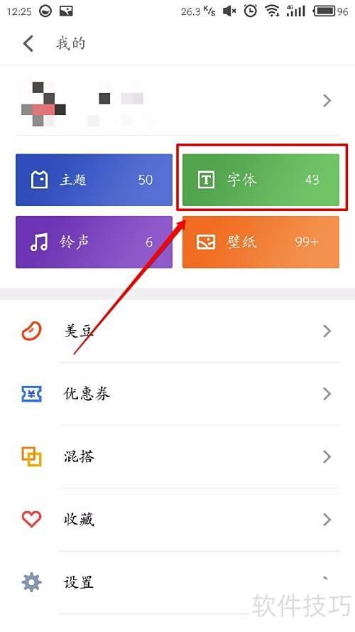 3、 进入个人信息页面,点击字体选项即可调整字体设置。