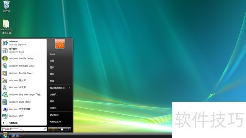 1、 启动Windows Vista系统后,点击任务栏上的开始按钮,即可打开开始菜单,所示。