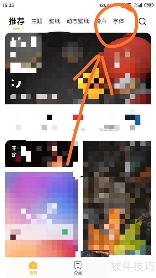 2、 点击首页顶部的字体按钮。