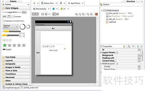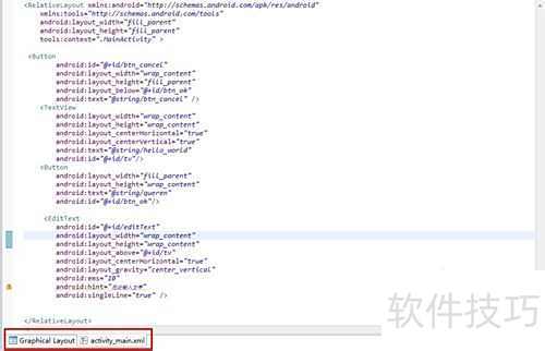 7、 在Android的IDE中打开UI编辑界面,可选择代码编辑或可视化操作两种方式。