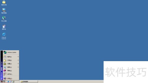 1、 启动Windows 2000 Server系统后,单击屏幕下方任务栏上的开始按钮。
