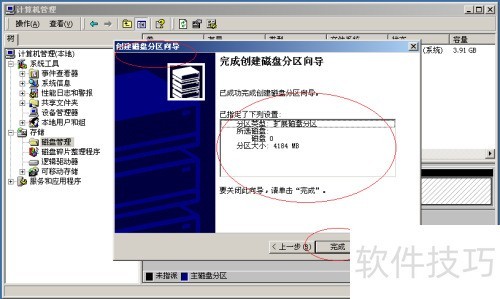 6、 操作,完成扩展磁盘分区的创建,本示例结束,希望能为各位提供参考与帮助。