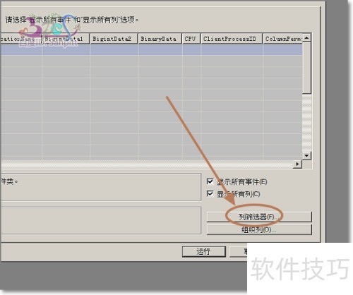 7、 在筛选器中定位DatabaseID,将其条件设置为查询所得的数据库ID,确认操作即可。