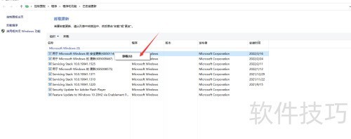 10、 进入卸载程序界面,定位到需删除的Windows自动更新文件,右键点击并选择卸载即可完成操作。
