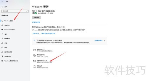 6、 进入更新与安全,点击Windows更新下的查看更新历史记录选项即可查看。
