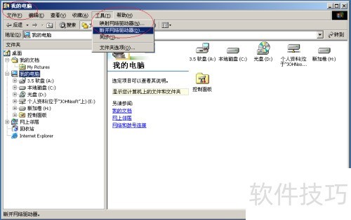 在Windows 2000 Server中,打开我的电脑,右键点击已连接的网络驱动器,选择断开连接即可移除网络驱动器。
