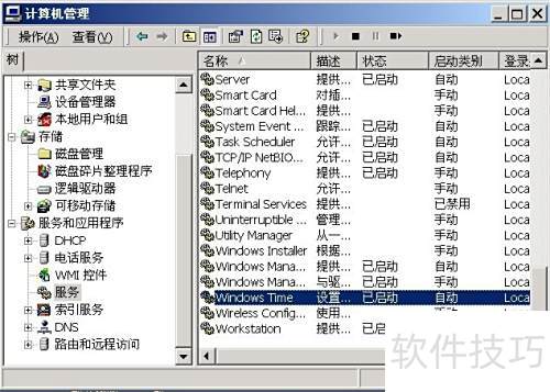 19、 打开服务找到Windows Time,先停止再启动即可。