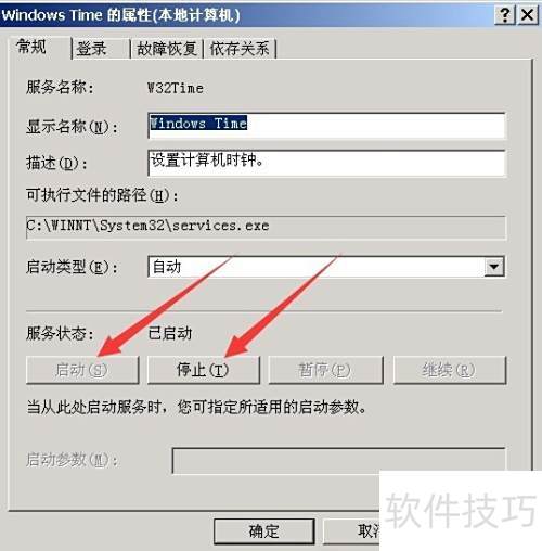 10、 命令执行成功后,停用系统自带的Windows Time服务,随后重新启动该服务。