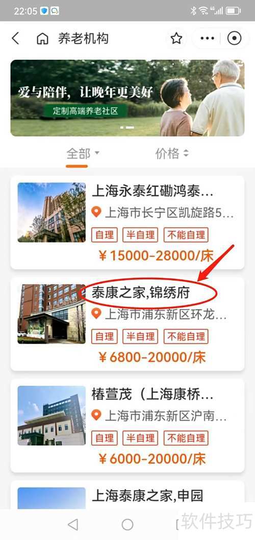 4、 查看上海各养老院收费详情,点击即可了解具体机构信息。