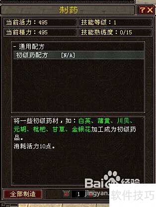 新手玩家在游戏中制药需掌握基础配方,注意材料搭配,避免浪费资源,逐步提升技能熟练度。