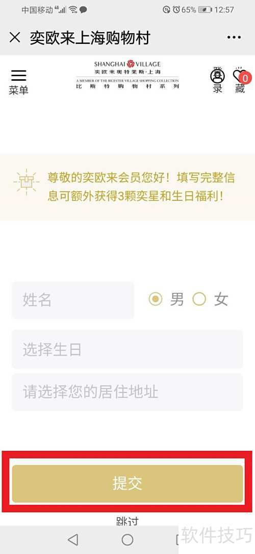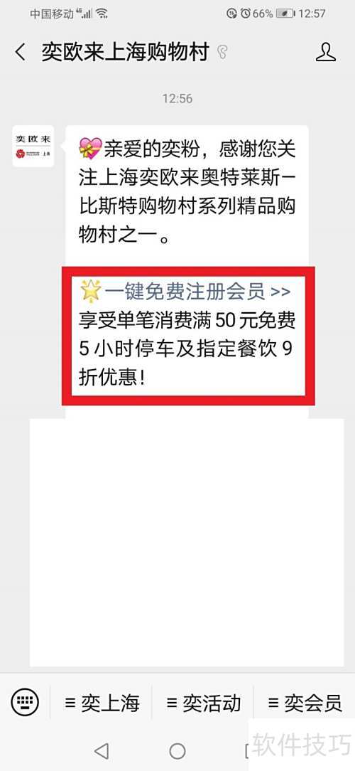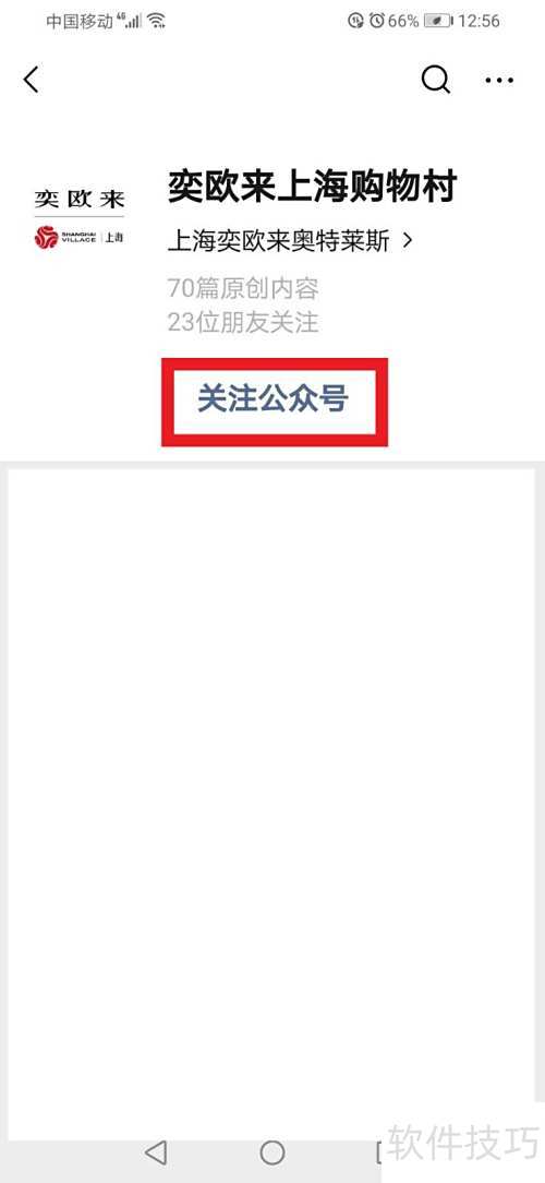 2、 关注上海奕欧来购物村公众号,详见图中红框标注位置。