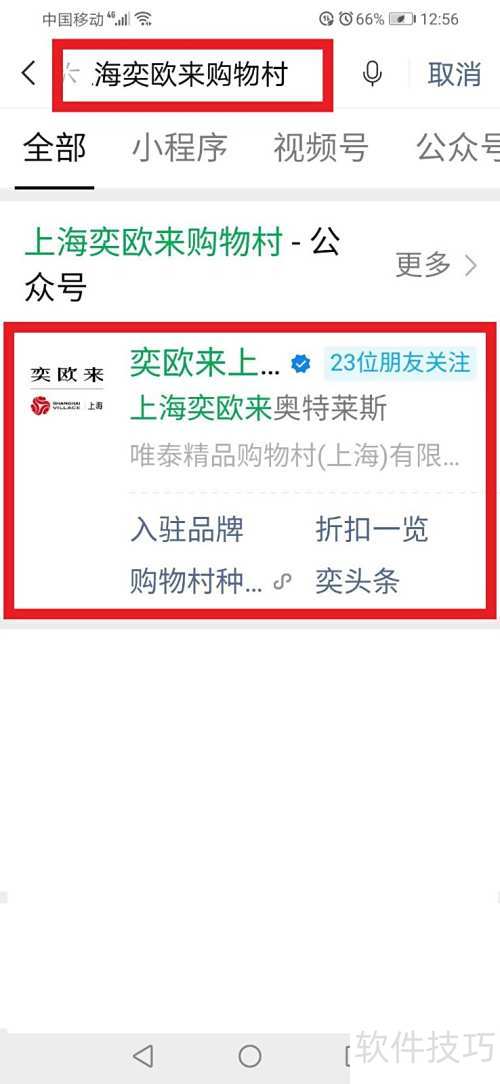 1、 下载安装微信,搜索上海奕欧来购物村,详见图中红框标注。