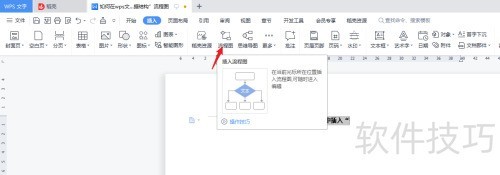 2、 在WPS文字中,点击插入工具栏中的流程图选项,所示。