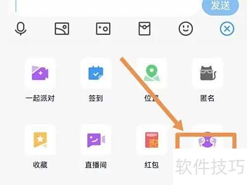 1、 进入QQ群聊后,点击一起听歌功能即可。